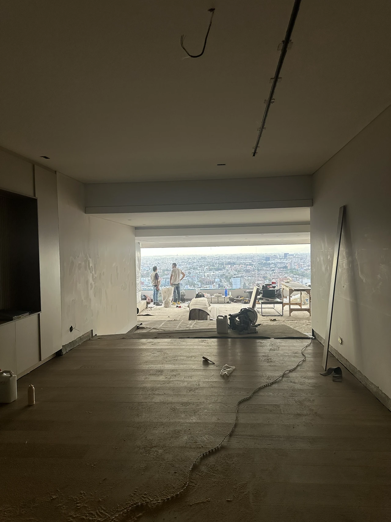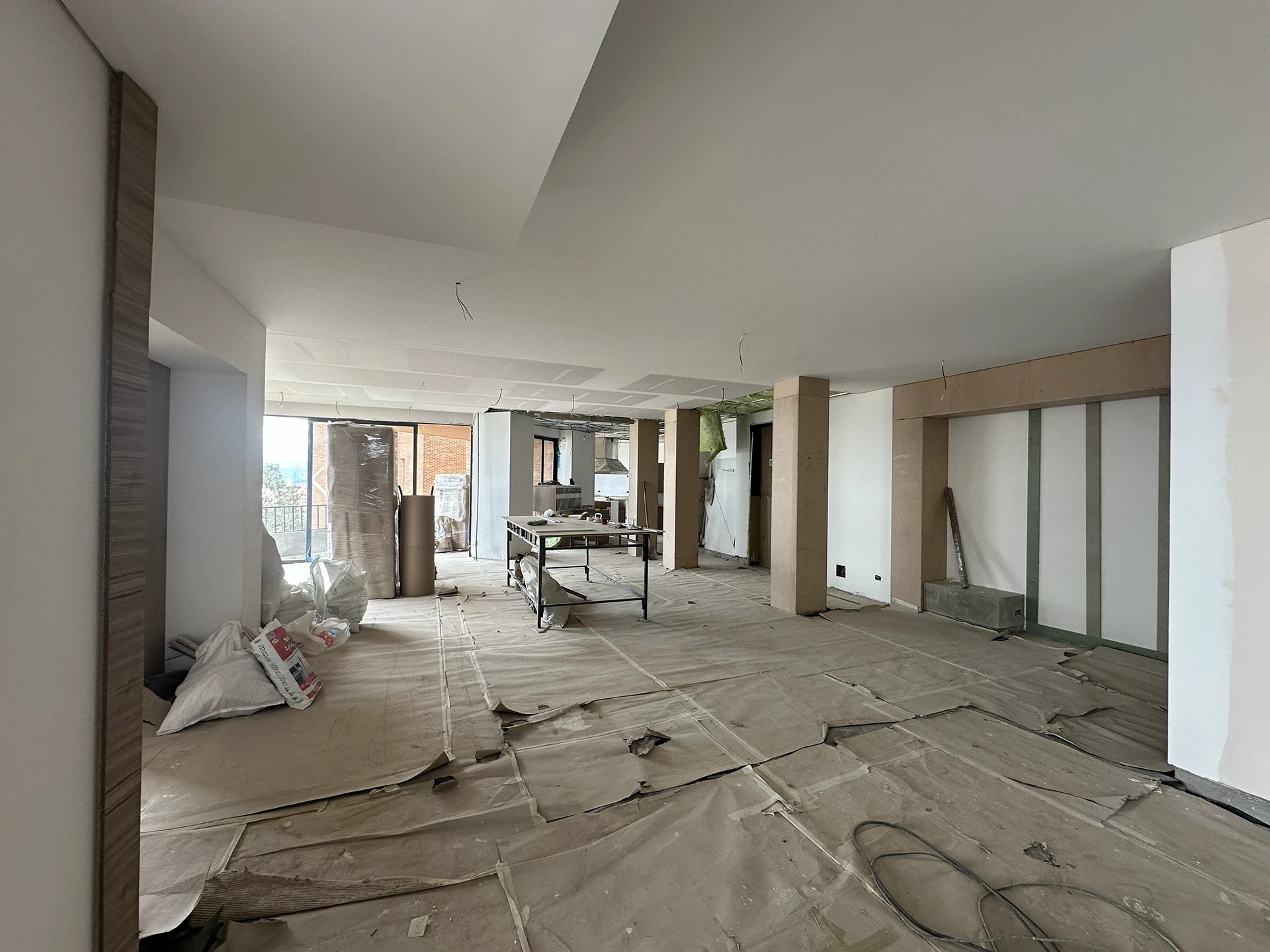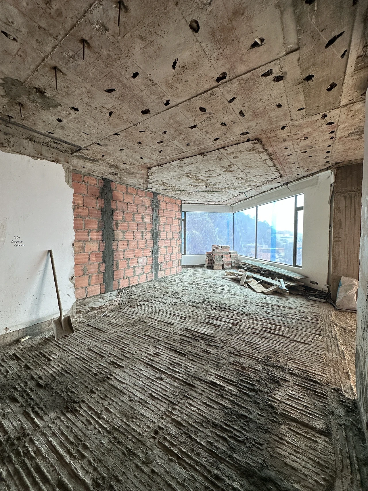 Diseño y la redistribución total de los espacios, adaptando el apartamento a las necesidades de sus nuevos propietarios. El proceso contempló la demolición de muros y pisos, junto con el retiro de instalaciones eléctricas, hidrosanitarias y de gas, para su actualización conforme a la normativa vigente. Asimismo, se llevó a cabo la demolición completa conservando únicamente las fachadas, con el reemplazo de la ventanería por sistemas de mayor especificación o ventanería termoacústica.