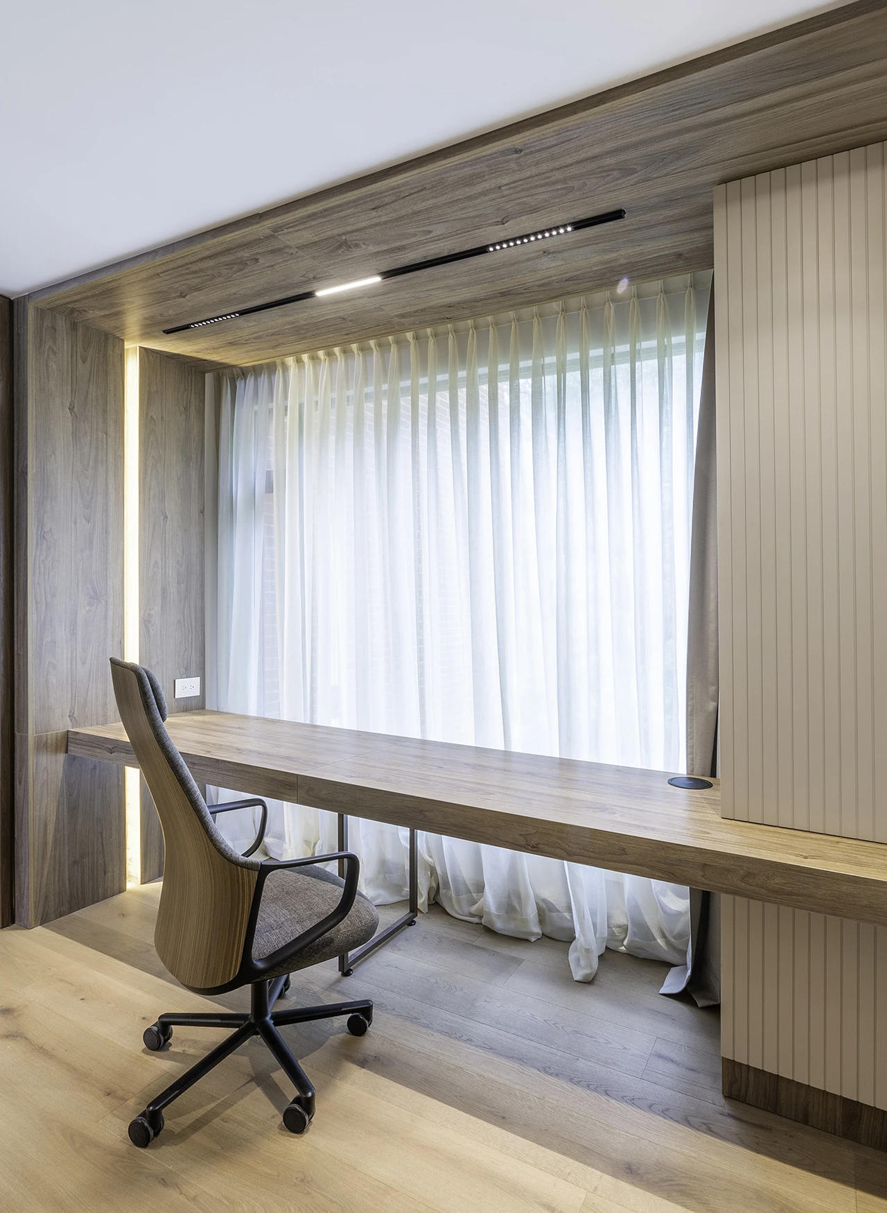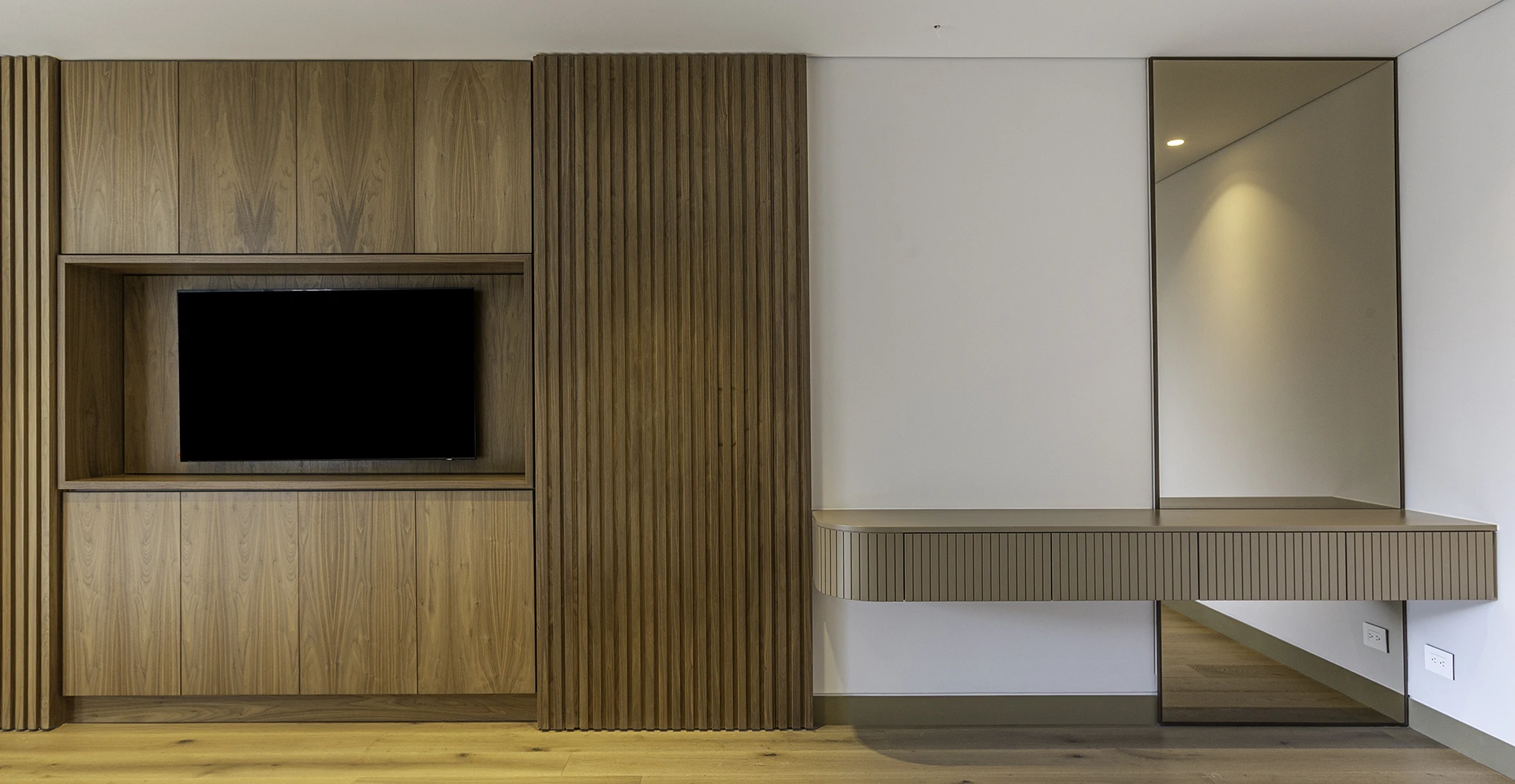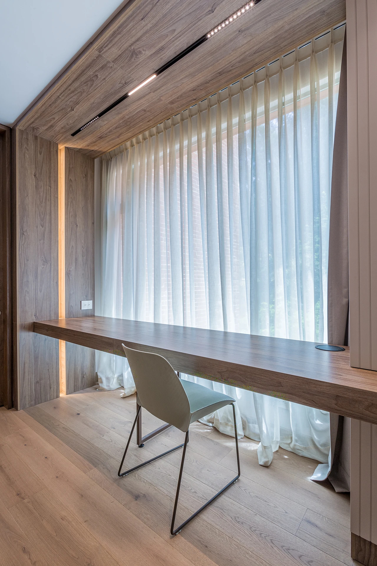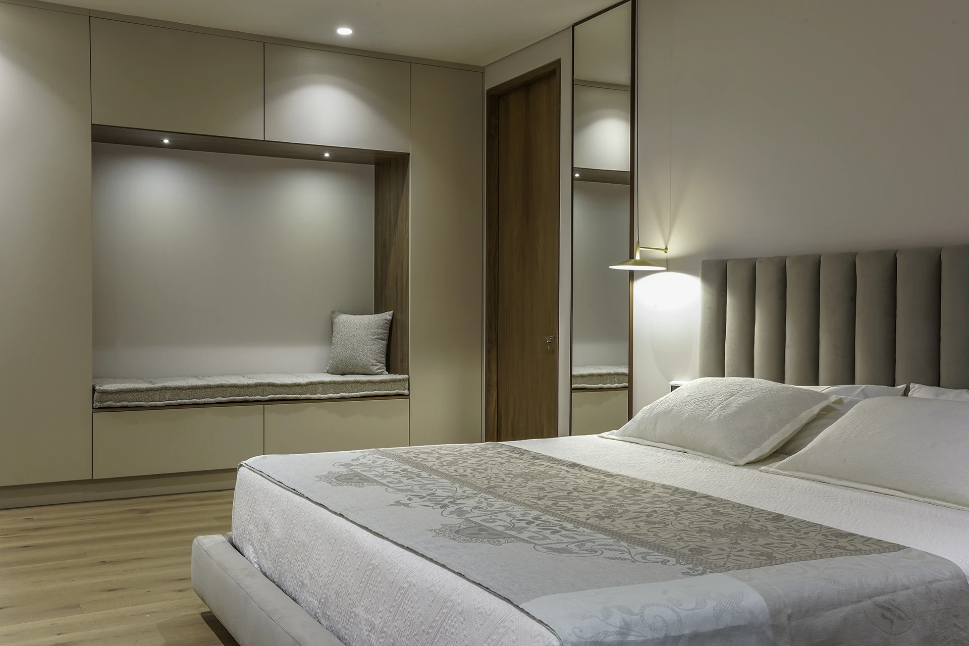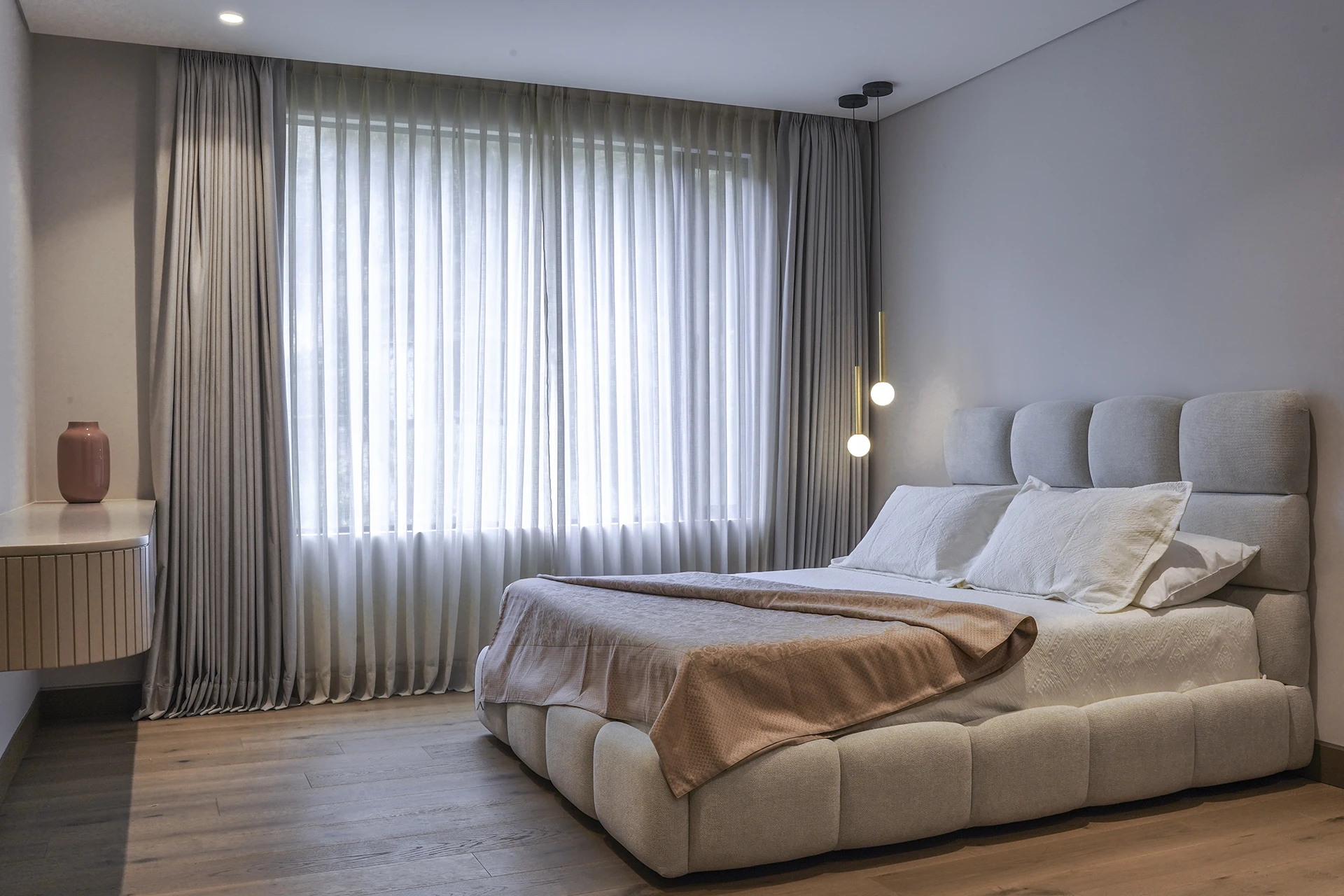 En cuanto al interiorismo, dimos vida a los espacios interiores, donde la luz, los materiales y el mobiliario se integran con armonía para generar bienestar, belleza y equilibrio. Cada detalle fue concebido para que el apartamento no solo luzca bien, sino que también se sienta bien.