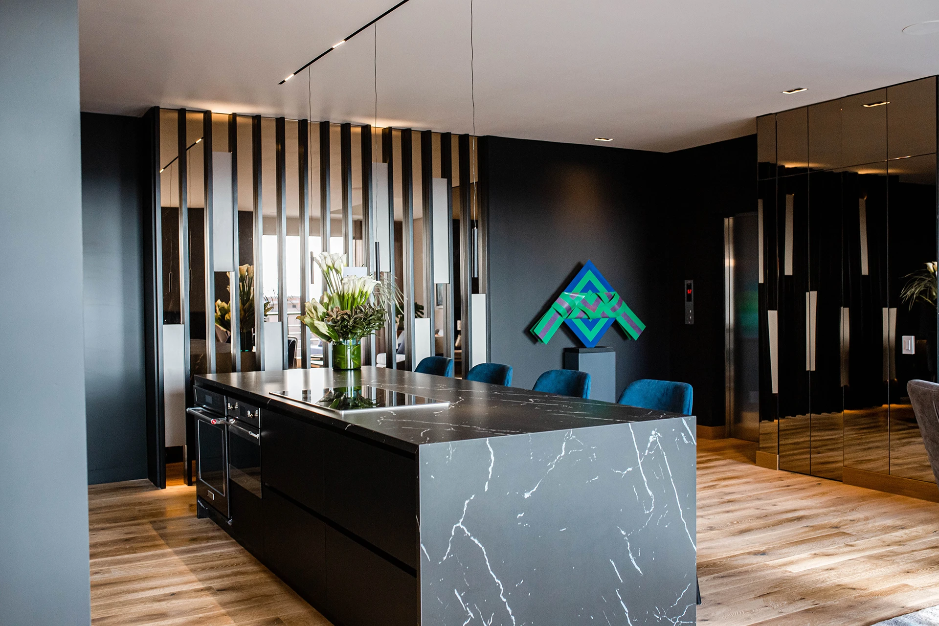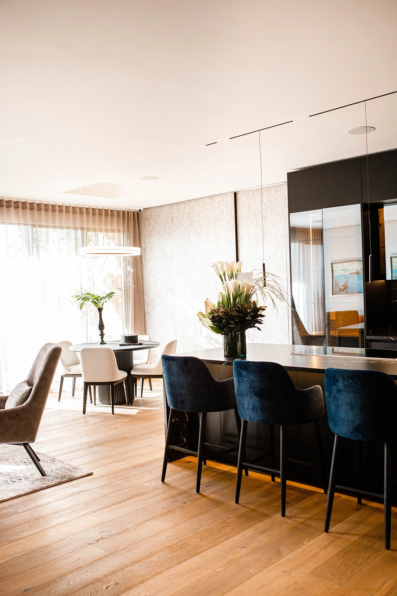 La obra contempló la construcción y renovación de las instalaciones eléctricas, hidrosanitarias y de gas, garantizando el cumplimiento de la normativa vigente y asegurando un alto nivel de calidad y eficiencia en cada detalle. El resultado es un apartamento moderno, personalizado y pensado para el disfrute de su propietario.